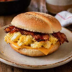 4. Assemble sandwiches with bacon, eggs, and toasted bread.